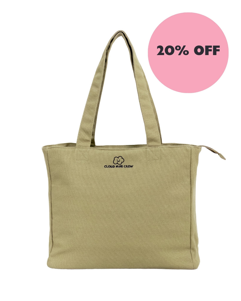 I am extremely happy with this bag! The quality is excellent — the material feels durable and well-made, and the stitching is very solid. It’s the perfect size for everyday use, spacious enough to carry all my essentials without feeling bulky. The design is simple but really cute, and the Cloud Nine Crew logo adds a nice touch. The handles are comfortable to carry, even when the bag is full. Overall, I’m very satisfied and would definitely recommend it to anyone looking for a practical and stylish tote!