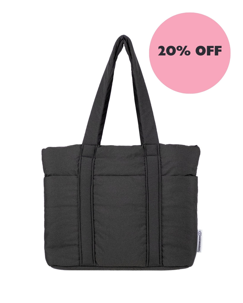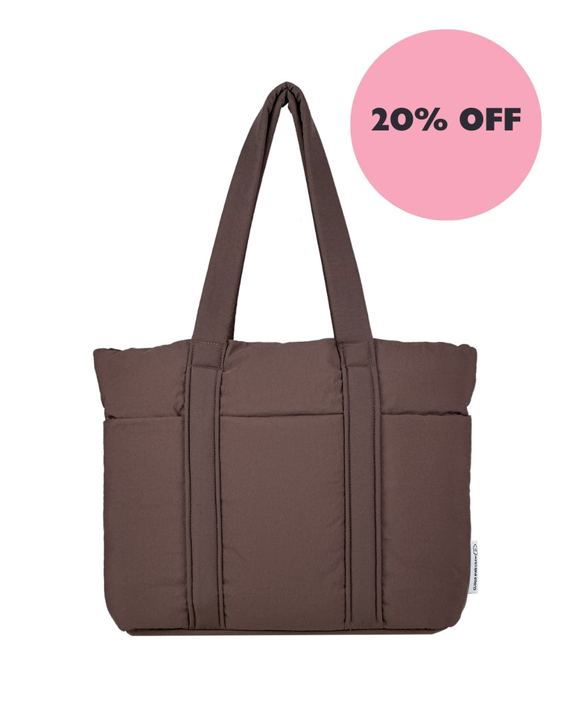 I waited for the restocking of the puffer tote in espresso brown and anticipated it so bad since i was looking for the perfect uni bag for so long! the moment I opened it I was immediately obsessed with the color and the material - overall it‘s genuinely the perfect bag for uni it fits all my things perfectly and they stay well organized in it. I loooove the side pockets on the outside of the bag very very practical and the marerial is puffy and comfy. the bag itself is just so cute i keep getting compliments on it at uni! thank you very much 😊🫶🏻