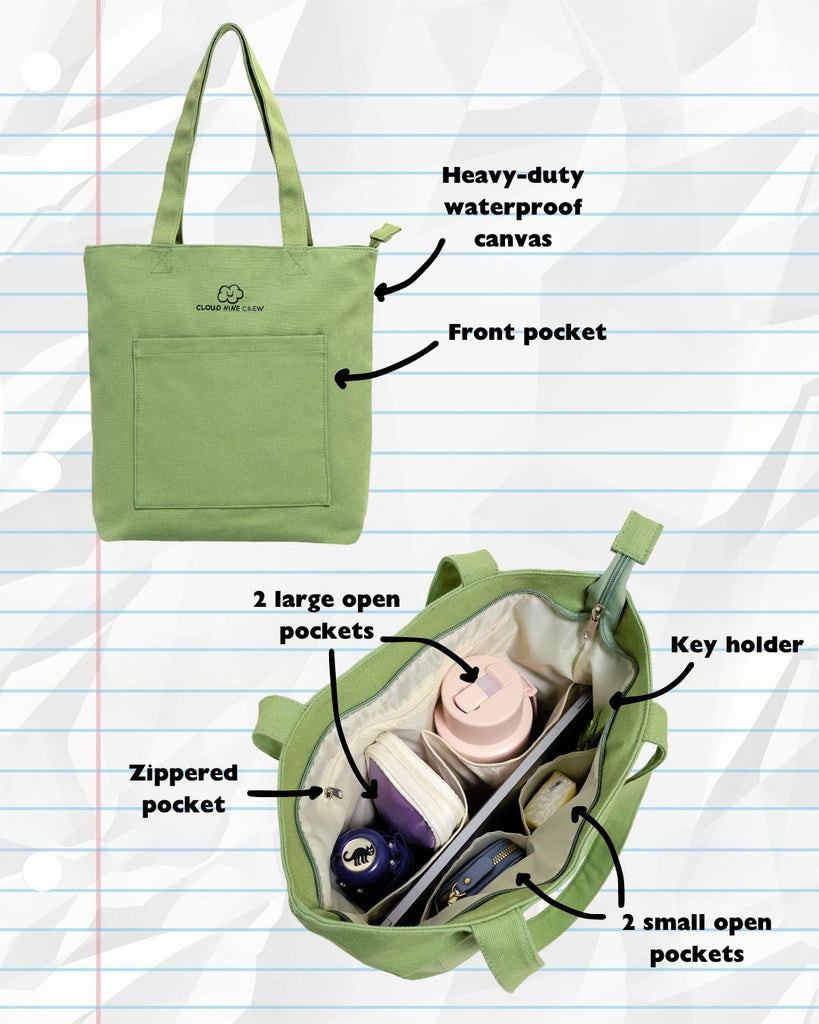 This isn't your ordinary tote bag. Our Everyday Tote is made with a heavy-duty and waterproof cotton canvas, ensuring it can withstand whatever you throw at it. Stay organised effortlessly with the 5 inner pockets, while the front pocket offers quick access to your essentials. Our tote bag also boasts a key hook inside for easy access to your keys - no more rummaging around!