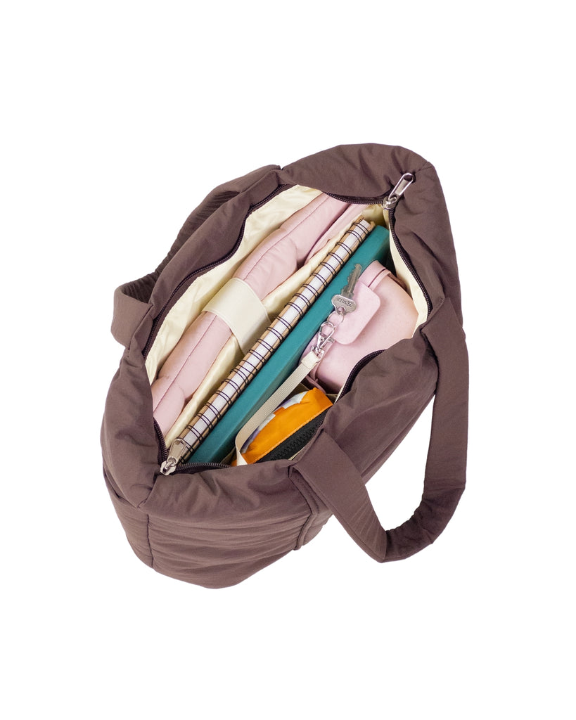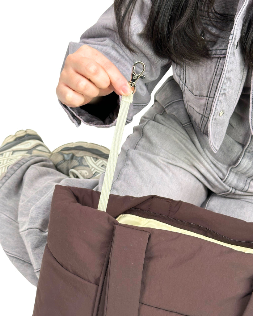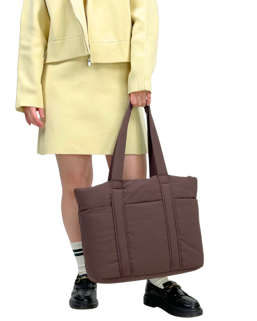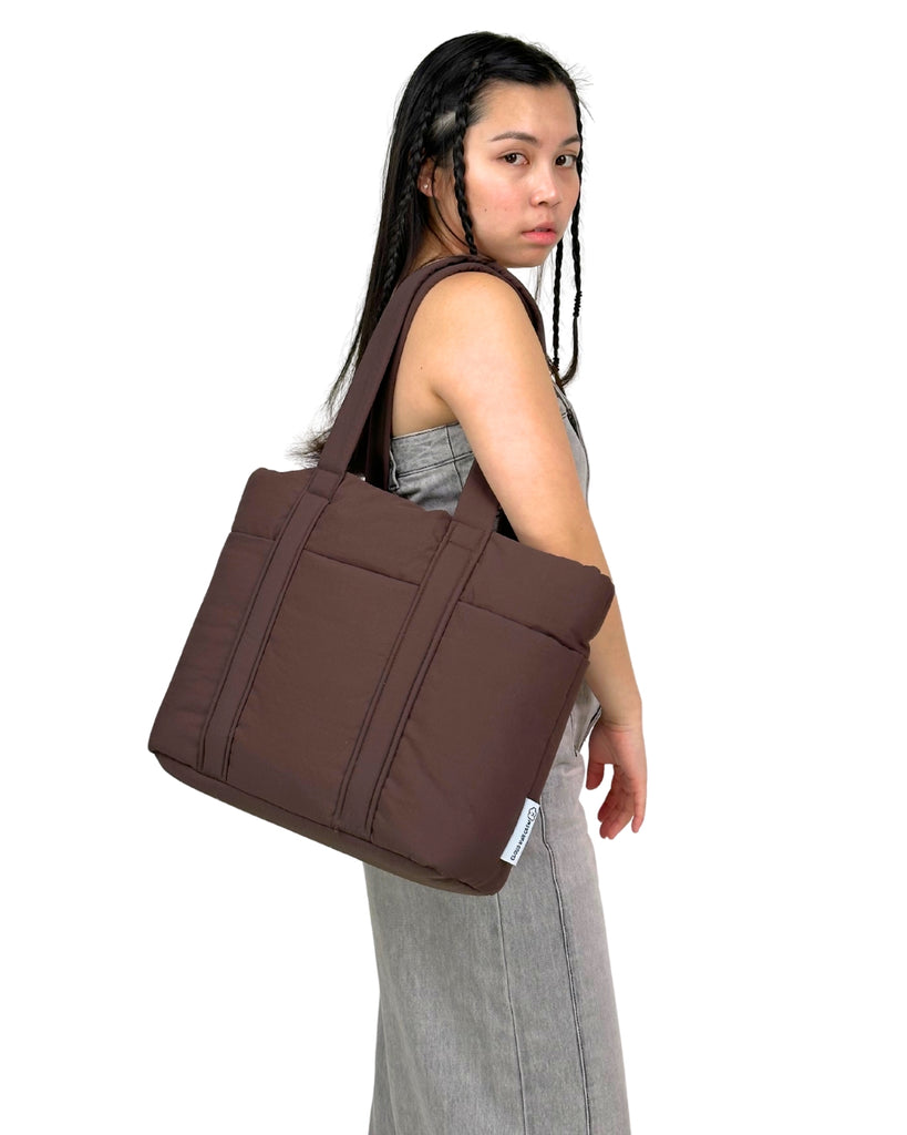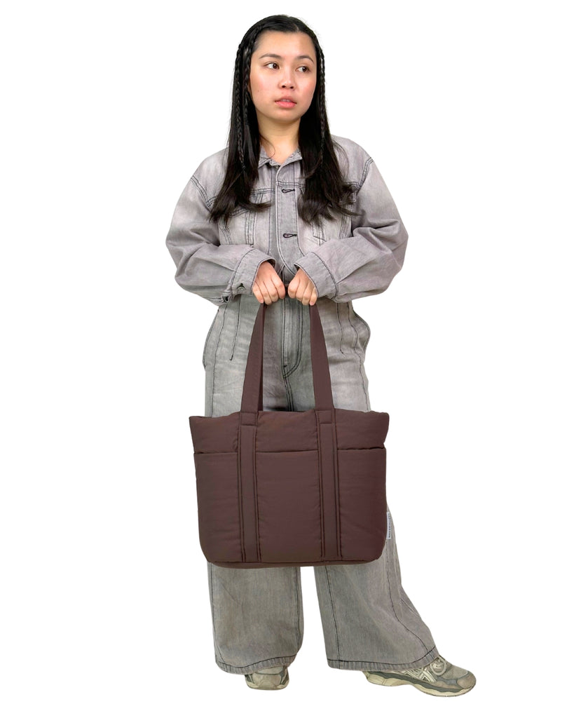 Say hello to the Puffer Tote—your new everyday essential. Made from water-resistant recycled nylon, it’s soft, padded, and packed with pockets to keep you organised. With 6 outer pockets, 2 roomy inner pockets, and a padded laptop compartment that fits most 16” laptops, it’s built for wherever the day takes you. Plus, a dual-zippered top and key clip keep everything secure and easy to find.